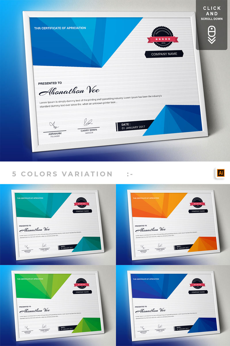 Download Шаблон сертификата "Corporate & Modern | Vol. 01 Certificate Template" / Corporate & Modern | Vol. 01 Certificate Template - Шаблон сертификата на тему графика certificate design template gift templates vintage psd word ms graduation achievement multipurpose training degree award of excellence appreciation recognition professional