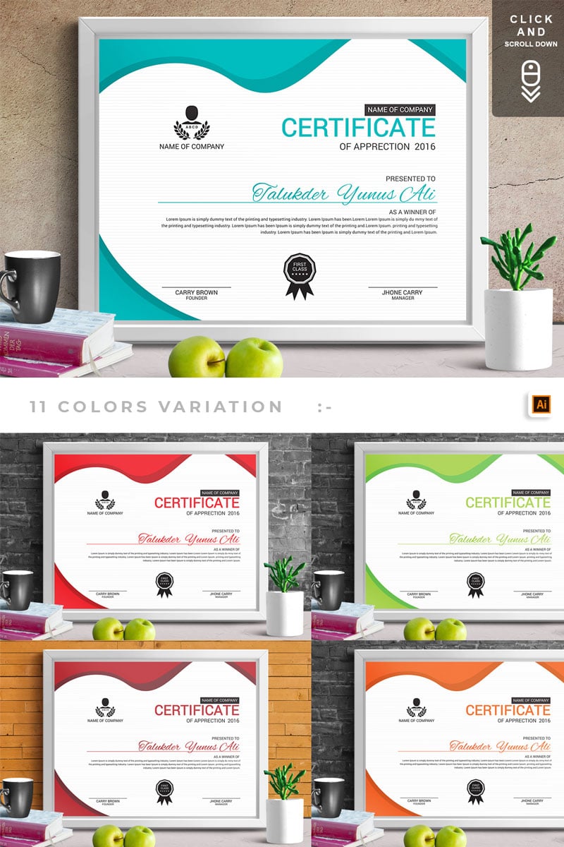 Download Шаблон сертификата "Corporate & Modern | Vol. 05 Certificate Template" / Corporate & Modern | Vol. 05 Certificate Template - Шаблон сертификата на тему графика certificate design template gift templates vintage psd word ms graduation achievement multipurpose training degree award of excellence appreciation recognition professional
