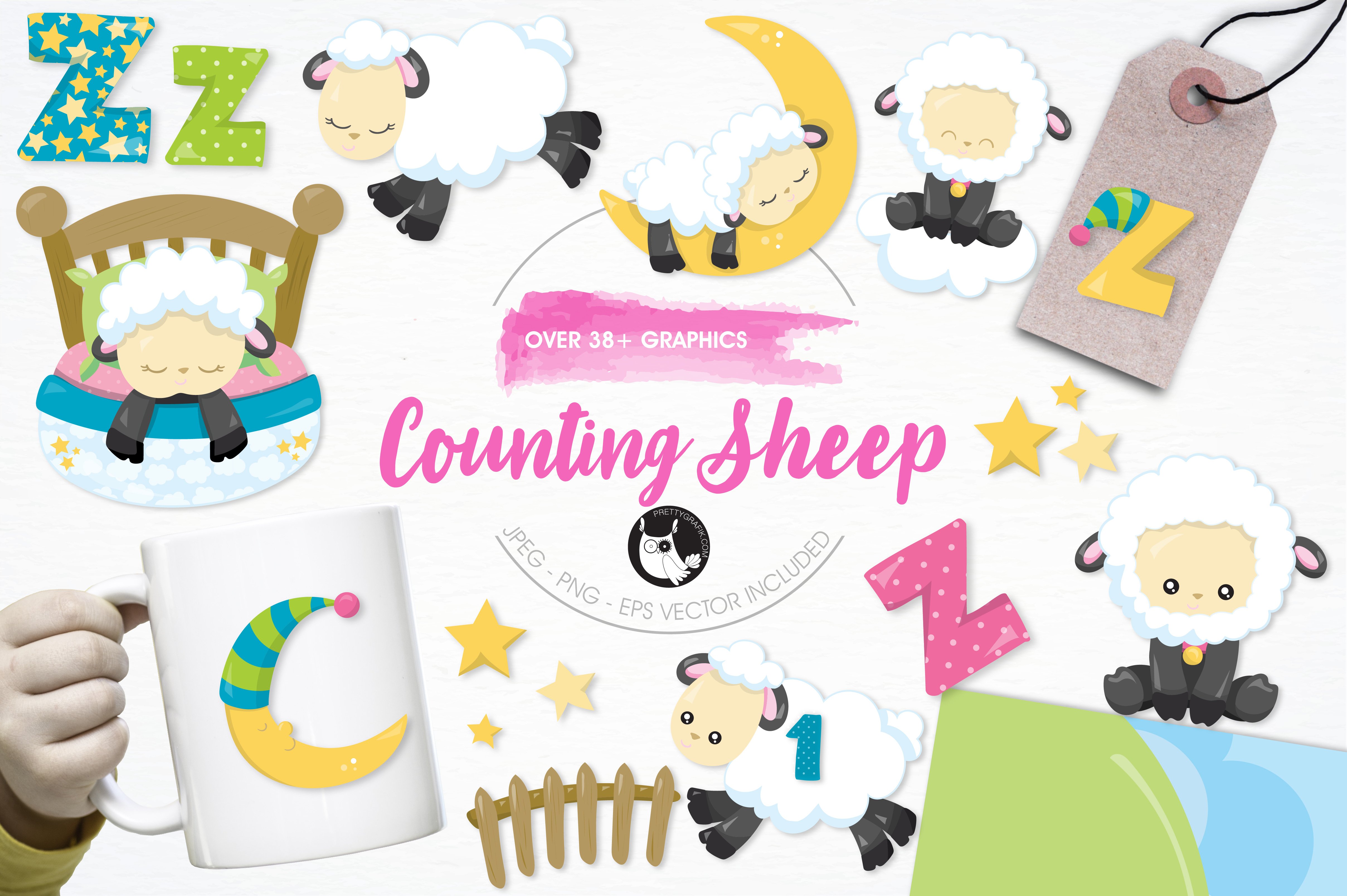 Download Vector "Counting sheep illustration pack - Vector Image" / Counting sheep illustration pack - Vector Image - Vector на тему графика illustration,vector,graphics,clipart,moon,stars,clip art,icons,night,bedtime,lamb,eps,prettygrafik,sleep,counting sheep