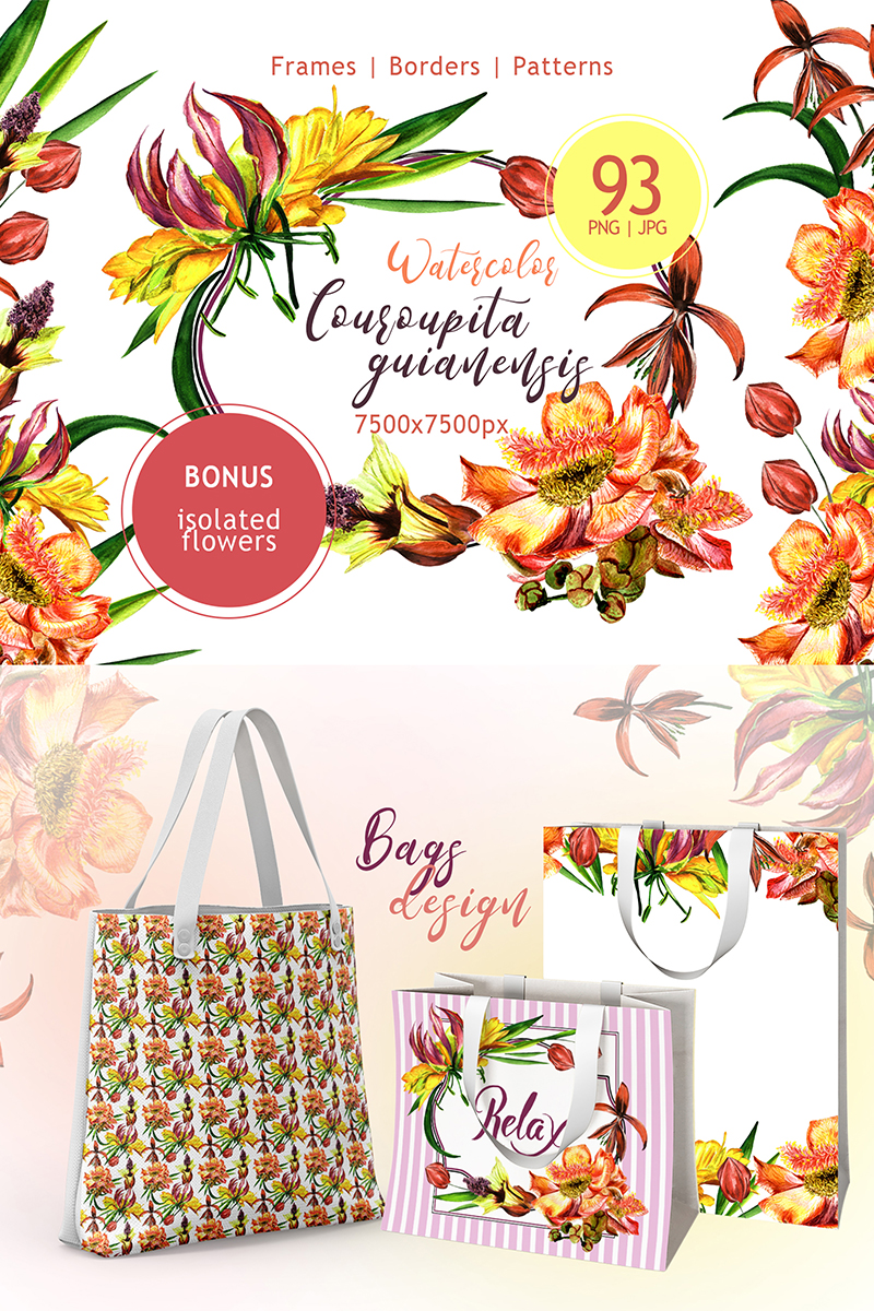 Download Иллюстрация "Couroupita Guianensis PNG Watercolor Set - Illustration" / Couroupita Guianensis PNG Watercolor Set - Illustration - Иллюстрация на тему графика watercolor exotic illustration delicate drawing background textile colorful sprykelia cannon tree gliosis drawn paint leaf plant wildflower deciduous foliage flower