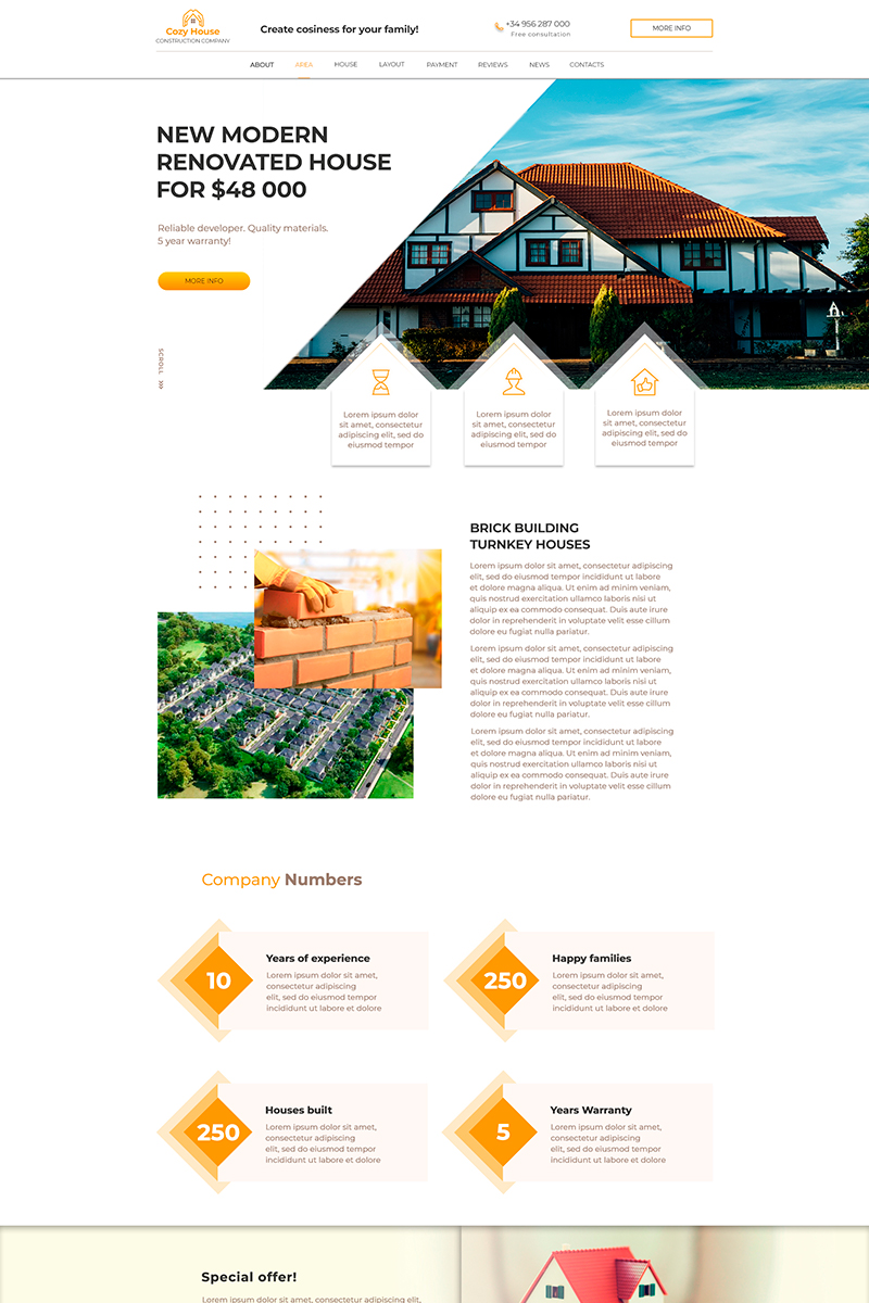 Download PSD шаблон "Cozy House PSD Template" / Cozy House PSD Template - PSD шаблон на тему графика house construction landing country houses countryhouses