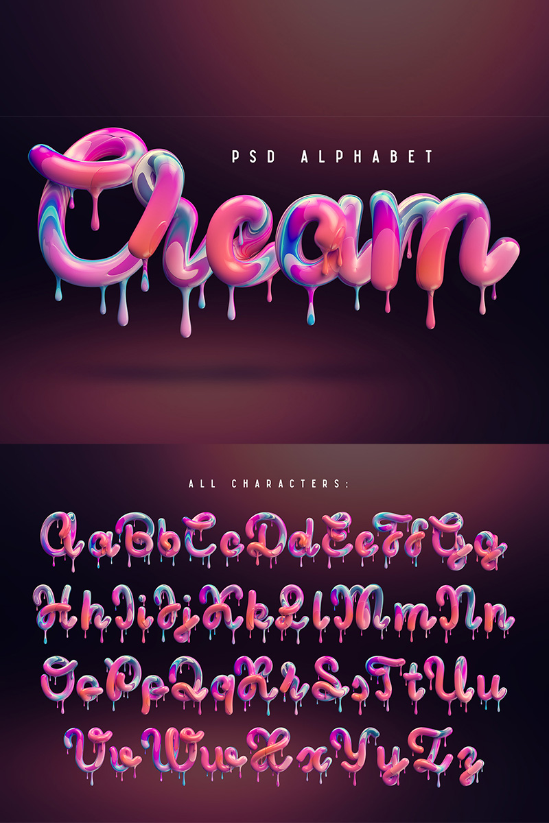 Download Шрифт "Cream alphabet Font" / Cream alphabet Font - Шрифт на тему графика alphabet font design symbol typography text set cream type liquid illustration abc letter dessert isolated candy sweet lettering food melt