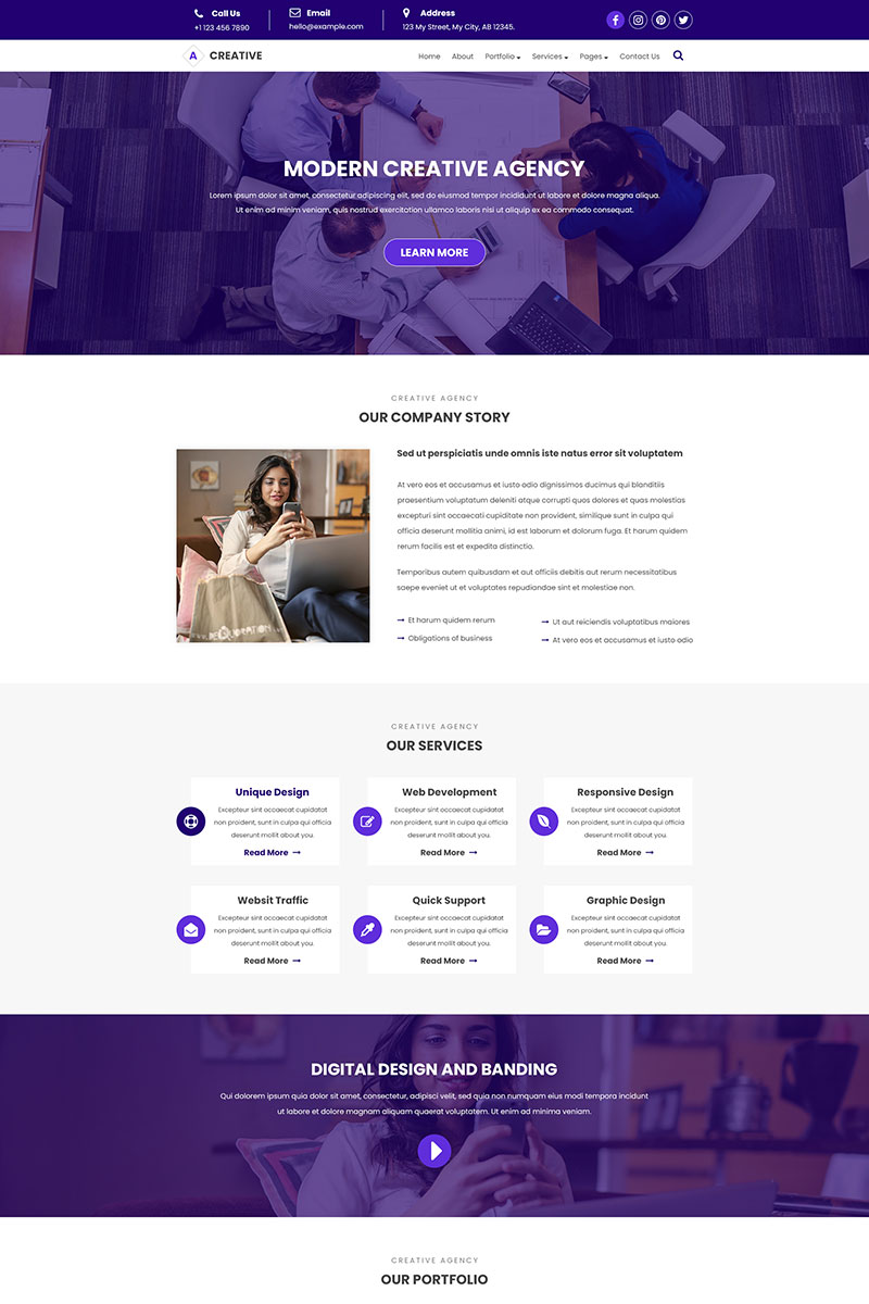 Download PSD шаблон "Creative - Agency PSD Template" / Creative - Agency PSD Template - Адаптивный PSD шаблон на тему офис agency creative design portfolio template psd showcase multipurpose business corporate