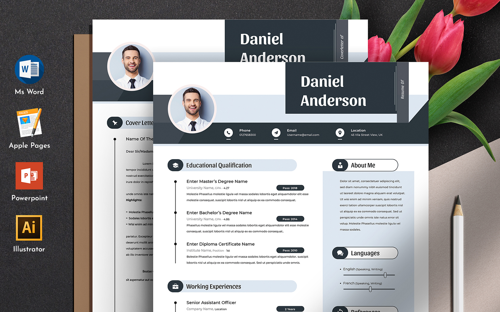 Download Creative & Modern Editable Word Apple Pages Cv Resume Template - Резюме на тему графика