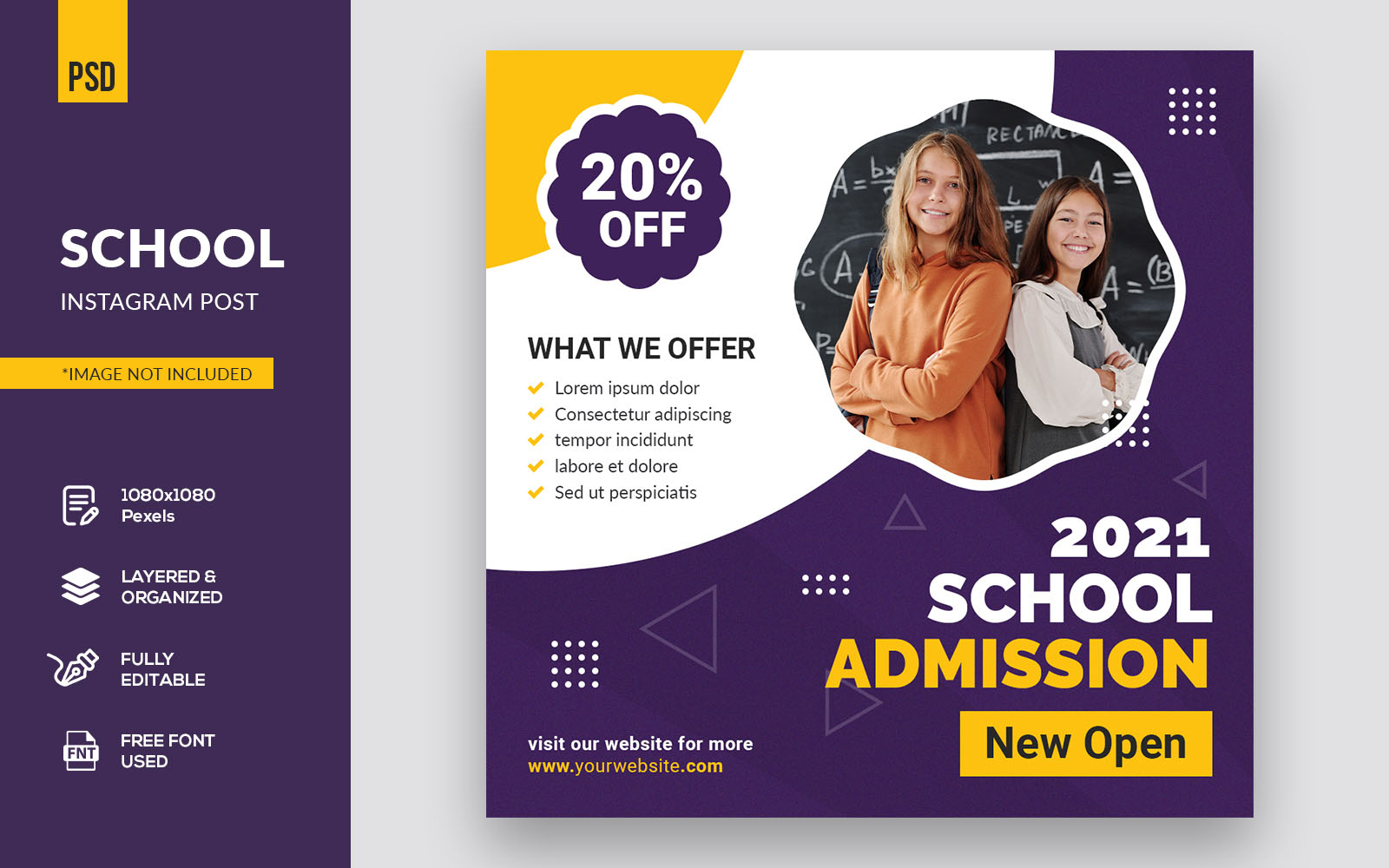 Download Шаблон для соцсетей "Creative Banner School Post Social Media Template" / Creative Banner School Post Social Media Template - Шаблон для соцсетей на тему графика template,facebook,cover,banner,instagram,instagram post,instagram stories,social media,school,education,back to school,student,children,happy,class,learning,home,child,classroom,kids