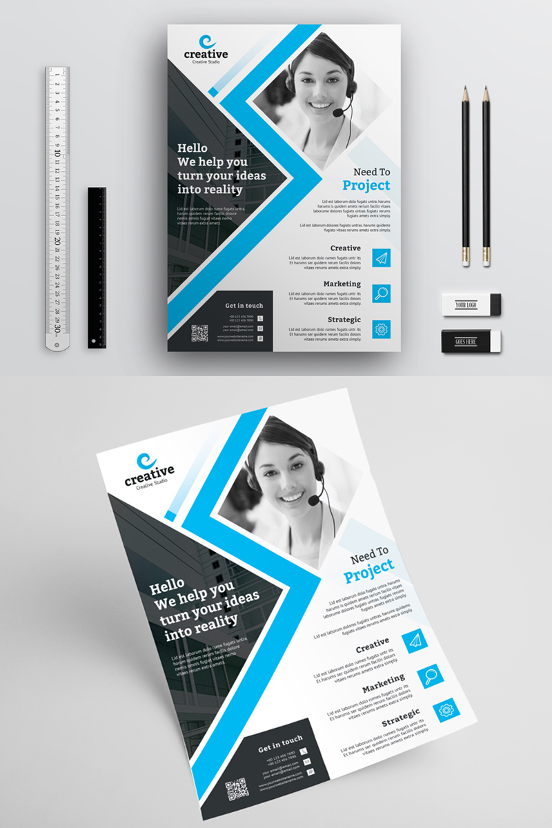 Download Фирменный стиль "Creative Business Flyer - Corporate Identity Template" / Creative Business Flyer - Corporate Identity Template - Фирменный стиль на тему графика flyer corporate artistic blue building computer graph graphic green hi-quality id kit internet logo modern multimedia official photo play prin