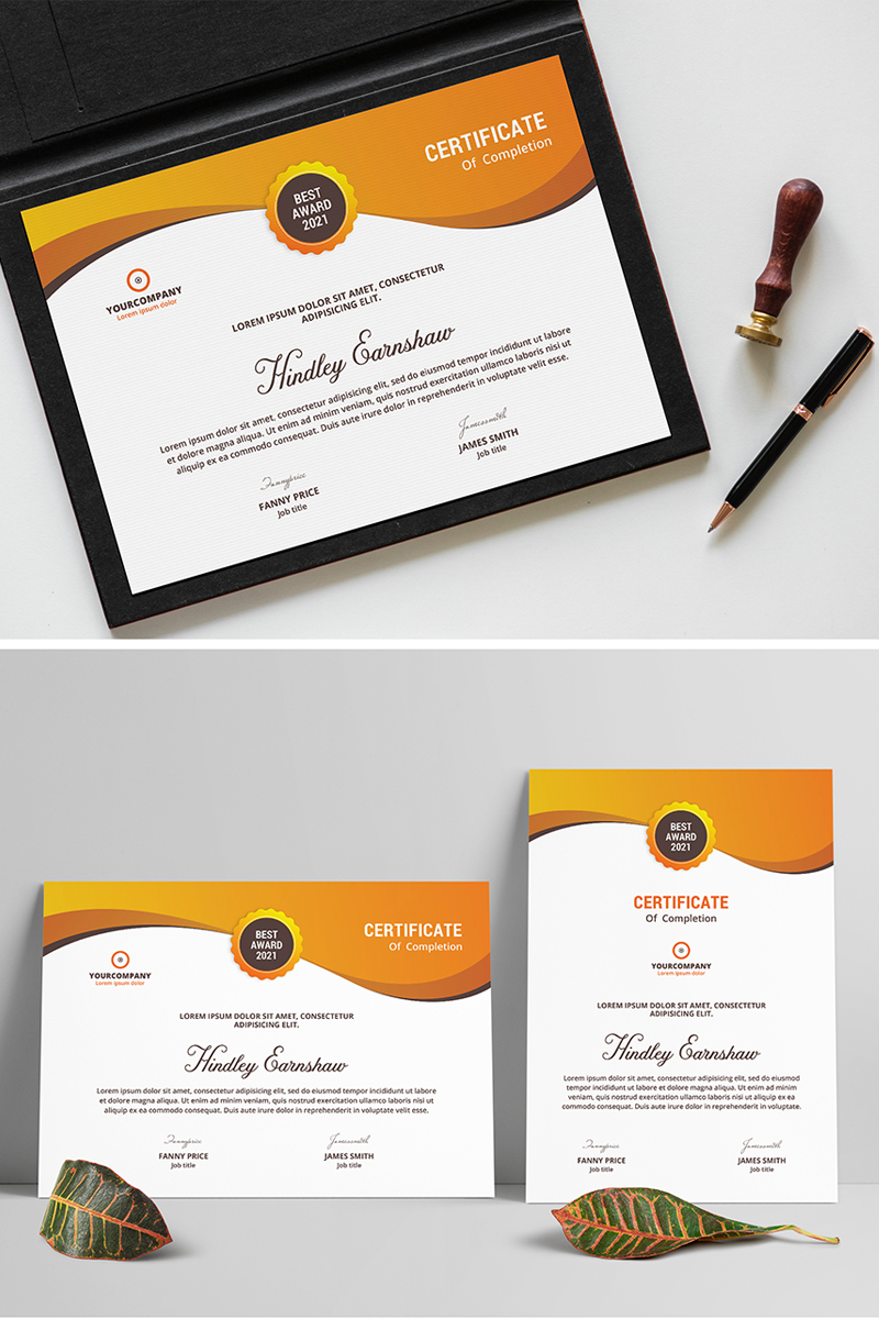 Download Фирменный стиль "Creative Certificate Layout. Portrait and Landscape" / Creative Certificate Layout. Portrait and Landscape - Фирменный стиль на тему графика 210x297,297x210,certificate,business,design,yellow,company,creative,graphic,landscape,letterhead,modern,official,orange,portrait,print,professional,simple,standard,ai