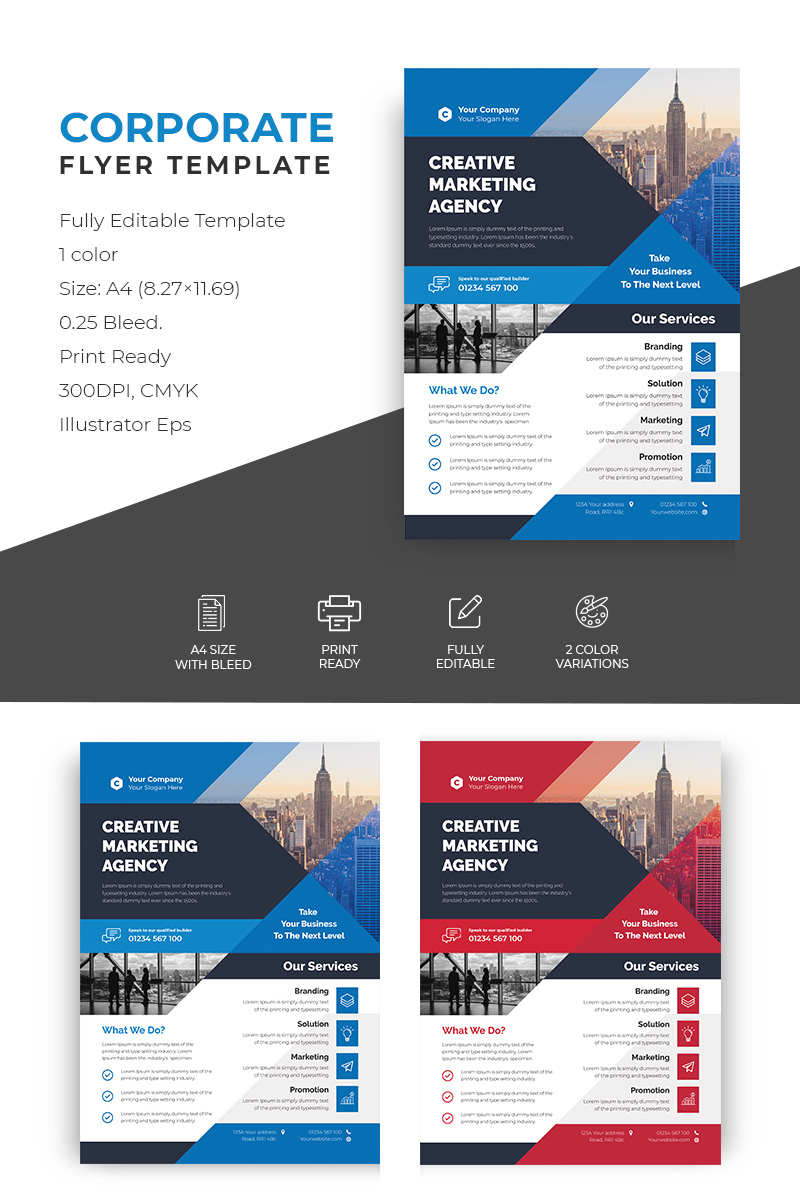 Download Фирменный стиль "Creative Clean Flyer - Corporate Identity Template" / Creative Clean Flyer - Corporate Identity Template - Фирменный стиль на тему графика a4 advertisement advertising agency business flyer clean company corporate creative design bundle leaflet magazine marketing modern multipurpose blue red business