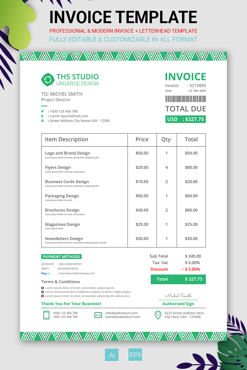 Download Фирменный стиль "Creative Invoice - Corporate Identity Template" / Creative Invoice - Corporate Identity Template - Фирменный стиль на тему графика a4,beige,blue,business,invoice,commercial,company,corporate,easy,eps,green,letter,orange,purple,red,template