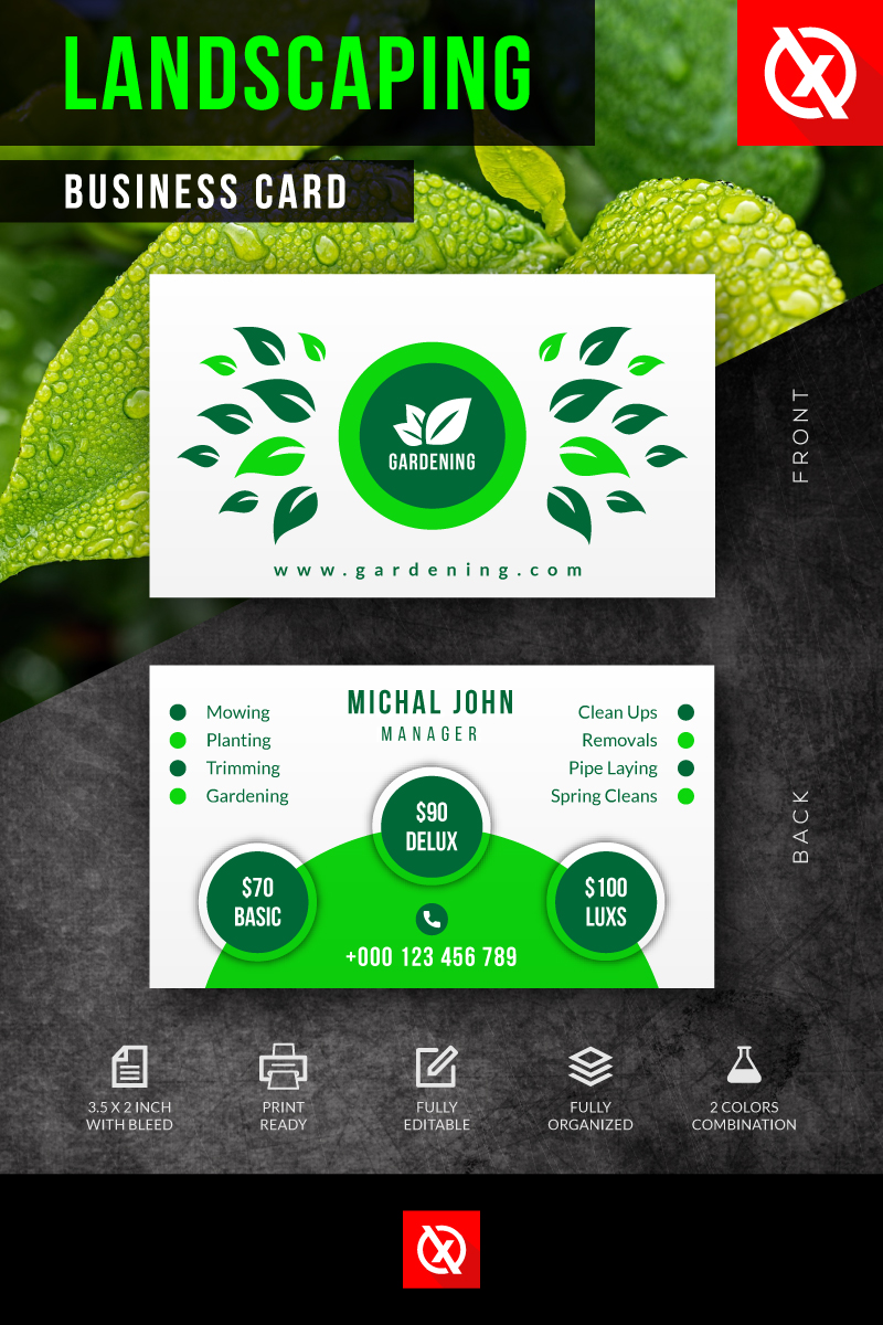 Download Фирменный стиль "Creative Landscaping Business Card - Corporate Identity Template" / Creative Landscaping Business Card - Corporate Identity Template - Фирменный стиль на тему графика business clean corporate creative design individual modern name personal professional sleek style stylish template unique card landscaping gardening green leaf