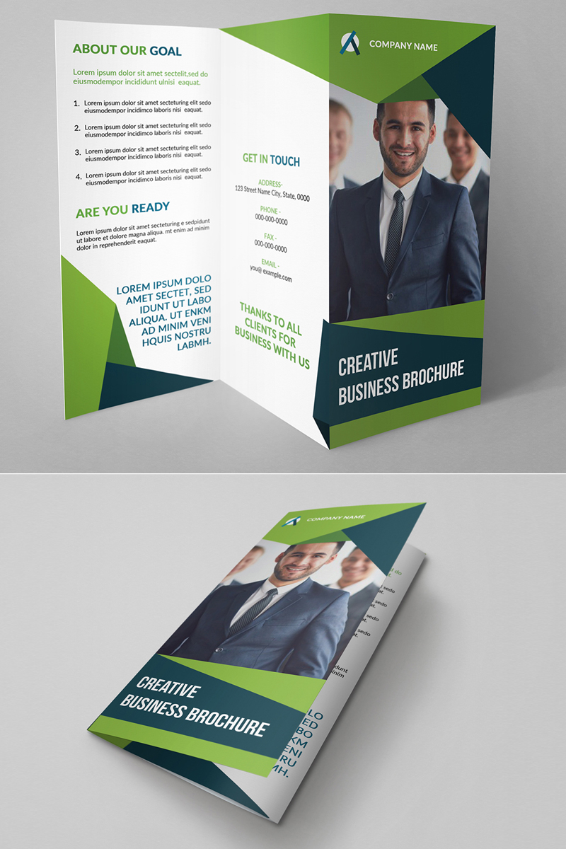 Download Фирменный стиль "Creative Trifold Business Brochure - Corporate Identity Template" / Creative Trifold Business Brochure - Corporate Identity Template - Фирменный стиль на тему графика corporate brochure template trifold tri-fold green company business photoshop psd layout proposal advertising modern clean minimal