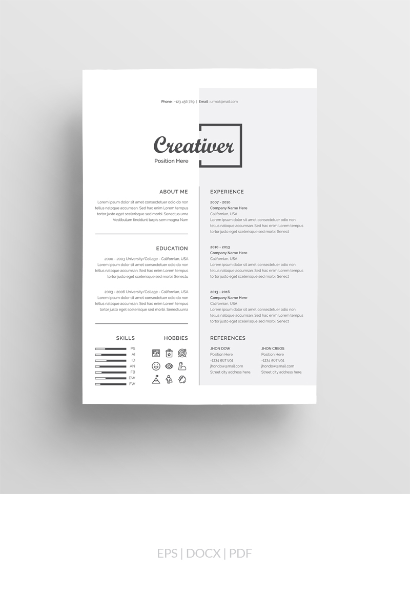 Download Резюме "Creativer CV Resume Template" / Creativer CV Resume Template - Резюме на тему графика clean resume minimal best template cv white modern gray one colour infographic resume design cv cover letter template modern minimal