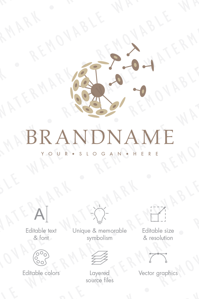 Download Шаблон логотипа "Crescent Moon & Dandelion Logo Template" / Crescent Moon & Dandelion Logo Template - Шаблон логотипа на тему графика plant art flower moon wind dandelion seed crescent bloom transformation decay falling apart surrealism night creative change logo design template