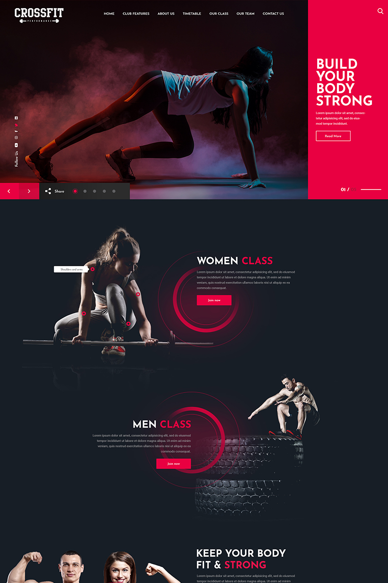 Download PSD шаблон "Crossfit Fitness One Page PSD Template" / Crossfit Fitness One Page PSD Template - Адаптивный PSD шаблон на тему фитнес fitness health personal trainer yoga gym care coaching body building