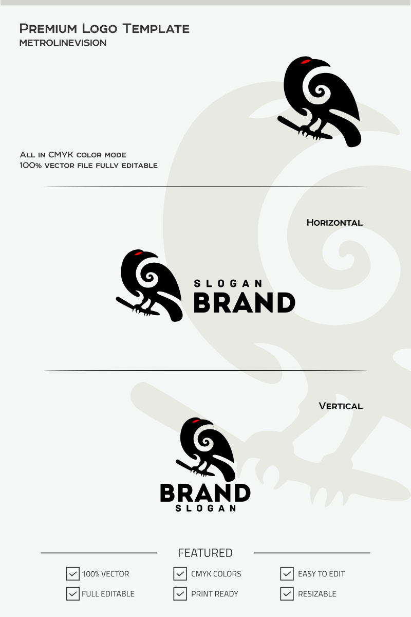 Download Шаблон логотипа "Crow Logo Template" / Crow Logo Template - Шаблон логотипа на тему графика animal bird black business cage carcass carnivore clothing corpse crow dark death elegant fierce fly gothic magic metal mystery mystique