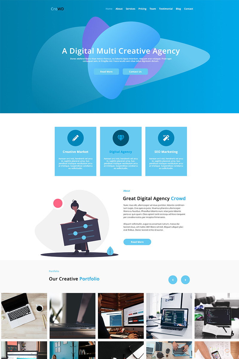 Download PSD шаблон "CroWD - One Page Multi-Purpose Creative Agency PSD Template" / CroWD - One Page Multi-Purpose Creative Agency PSD Template - Адаптивный PSD шаблон на тему маркетинговое агентство multi purpose agency freelancer bootstrap responsive creative modern style design