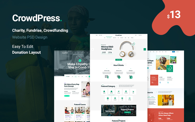 Download PSD шаблон "Crowdpress - Crowdfunding & Charity PSD Template" / Crowdpress - Crowdfunding & Charity PSD Template - PSD шаблон на тему благотворительность backer,causes,charity,crowdfunding,crowdsourcing,donations,foundation,funding,fundraiser,fundraising,indiegogo,kickstarter,nonprofit