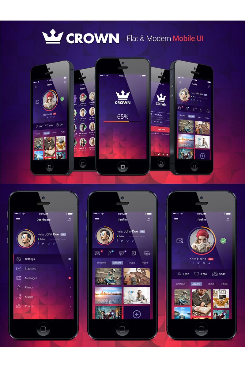 Download UI элементы "Crown - Fresh Mobile UI Elements" / Crown - Fresh Mobile UI Elements - UI элементы на тему графика