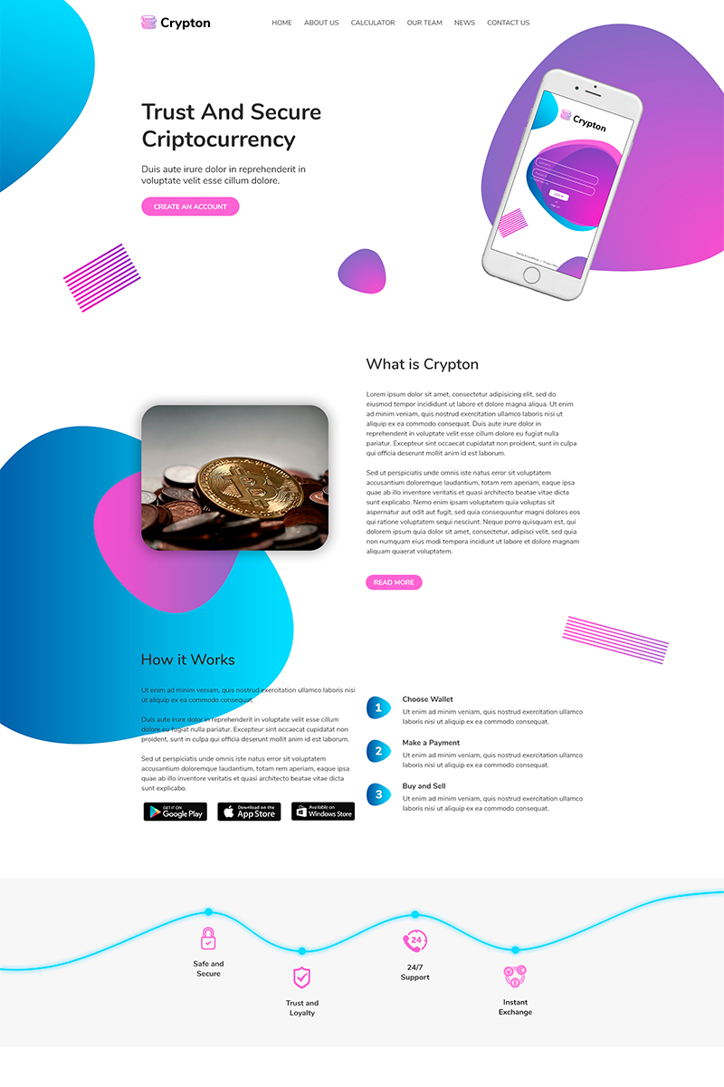 Download PSD шаблон "Crypton | Cryptocurrency PSD Template" / Crypton | Cryptocurrency PSD Template - PSD шаблон на тему программное обеспечение cryptocurrency bitcoin crypto currency ico mining online-wallet business marketing software technology one-page home-page multipurpose responsive trading investment