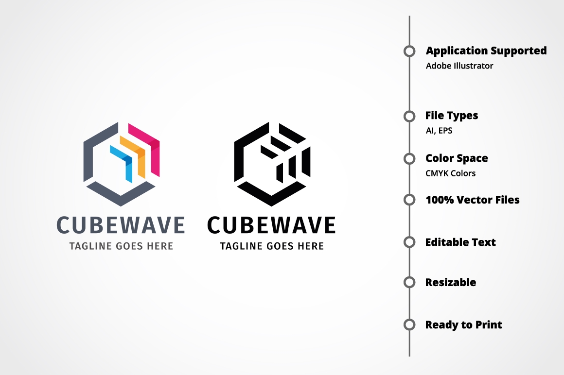 Download Шаблон логотипа "Cube Wave Logo Template" / Cube Wave Logo Template - Шаблон логотипа на тему графика box,business,communication agency,connect,connection,corporate,creative,cube,data,gaming club,hexagon,human,identity,infinity design,internet,marketing,media,mobile company,music chat,online