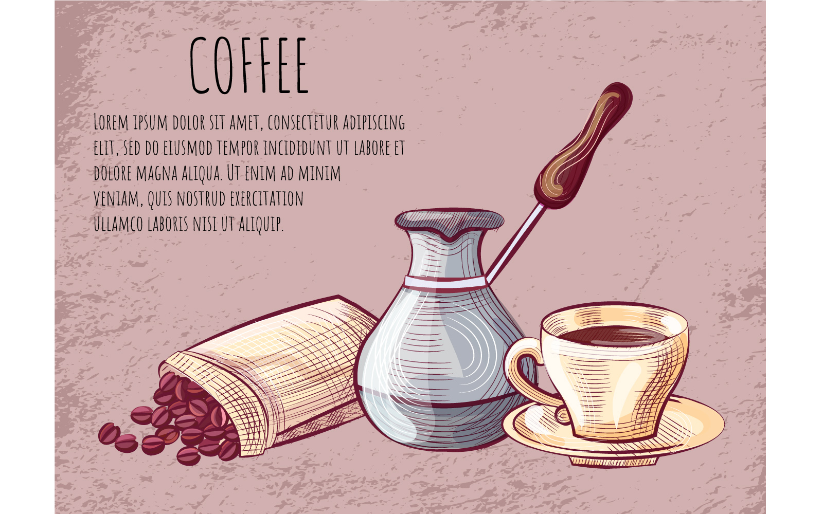 Download Vector "Cup of Coffee, Beans and Pot Tool, Postcard - Vector Image" / Cup of Coffee, Beans and Pot Tool, Postcard - Vector Image - Vector на тему еда и ресторан coffee,pot,shop,cup,vector,drawing,aroma,mug,espresso,cappuccino