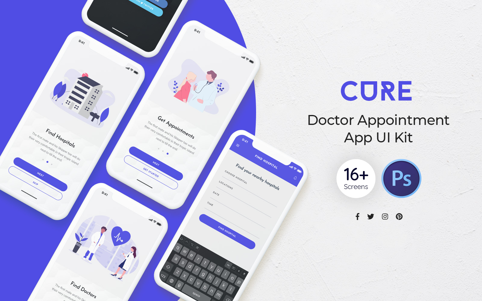 Download UI элементы "Cure: Doctor Appointment UI Elements" / Cure: Doctor Appointment UI Elements - UI элементы на тему графика cure,doctor,appointment,mobile,app,ui,kit,ux,template,templates,apps,developers,applications,booking,medical
