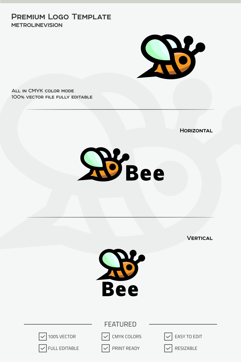Download Шаблон логотипа "Cute Bee Logo Template" / Cute Bee Logo Template - Шаблон логотипа на тему графика animal art bee brand business corporate creative creativity design entertainment flower fly graphic honey hornet icon illustrator insect logo cute