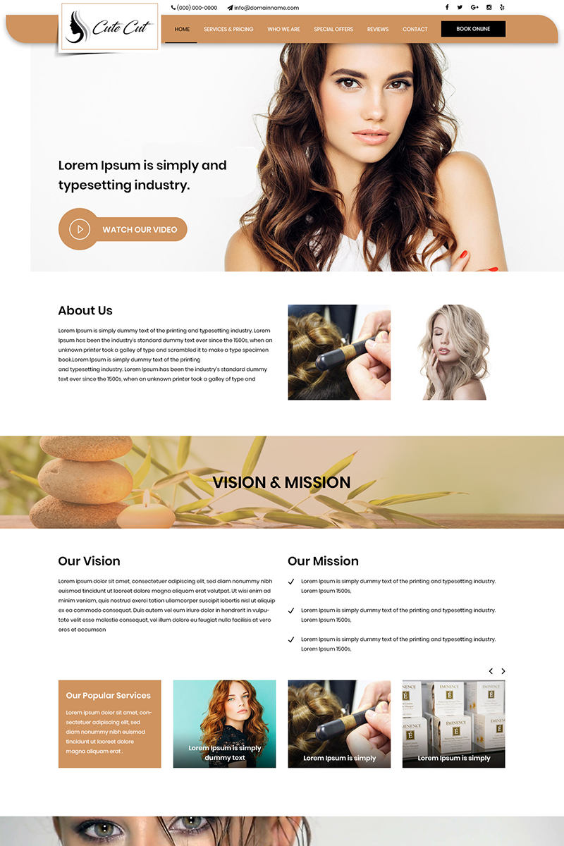 Download PSD шаблон "Cute Cut - Hair Saloon And Spa PSD Template" / Cute Cut - Hair Saloon And Spa PSD Template - PSD шаблон на тему салон saloon spa beauty template theme psd photoshop