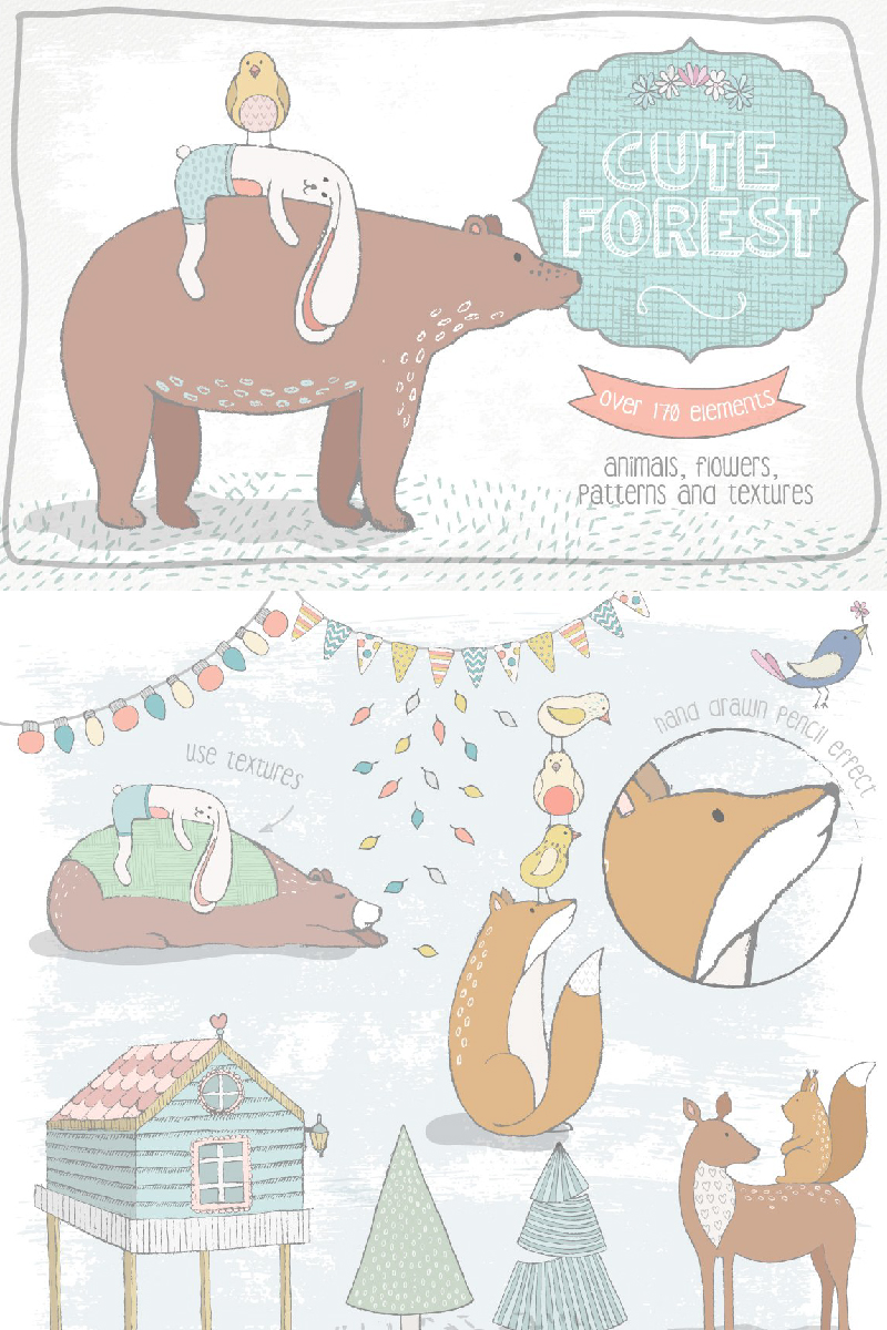 Download Иллюстрация "Cute Forest Collection - Illustration" / Cute Forest Collection - Illustration - Иллюстрация на тему графика cute forest bear kids baby rabbit wedding leaf leaves logo logos invitation card rsvp book cover magazine pattern seamless animals