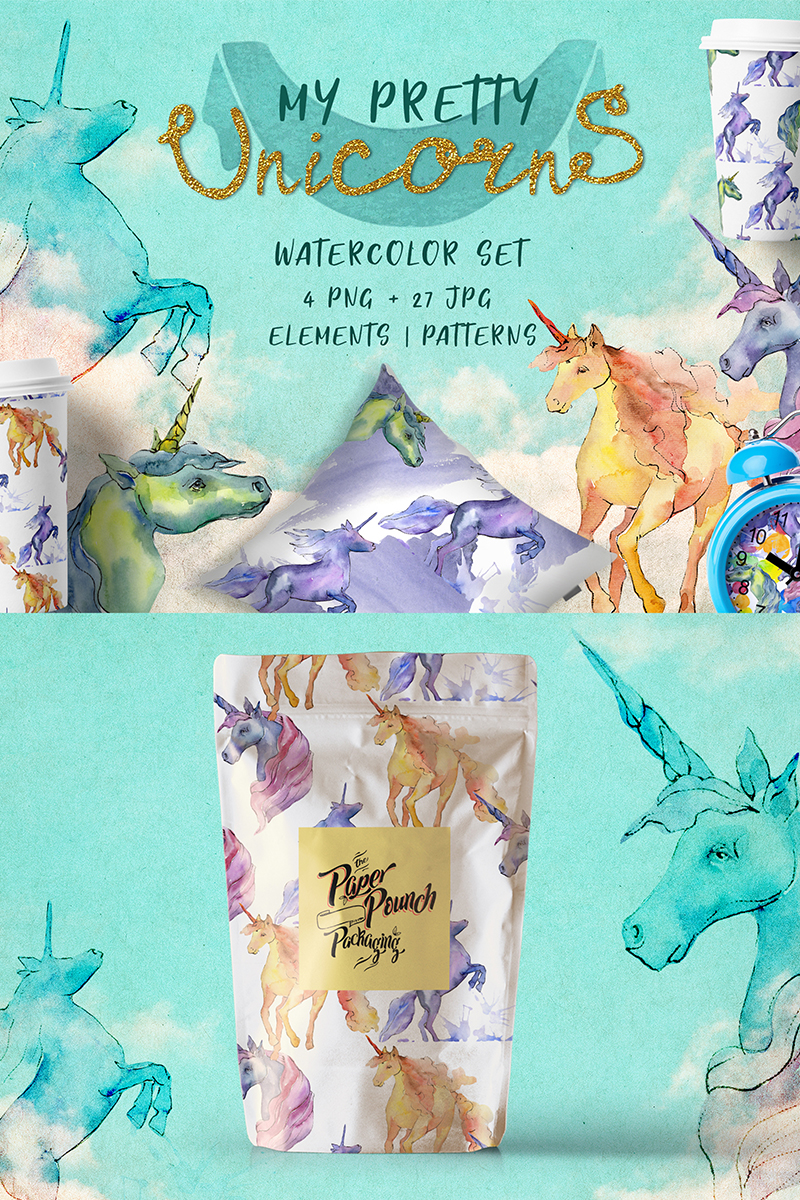 Download Иллюстрация "Cute Unicorn Horse PNG Watercolor Collection Set - Illustration" / Cute Unicorn Horse PNG Watercolor Collection Set - Illustration - Иллюстрация на тему графика watercolor illustration drawing background colorful drawn paint cute magic fantasy unicorn horse fairytale dream children sweet rainbow animal horn believe