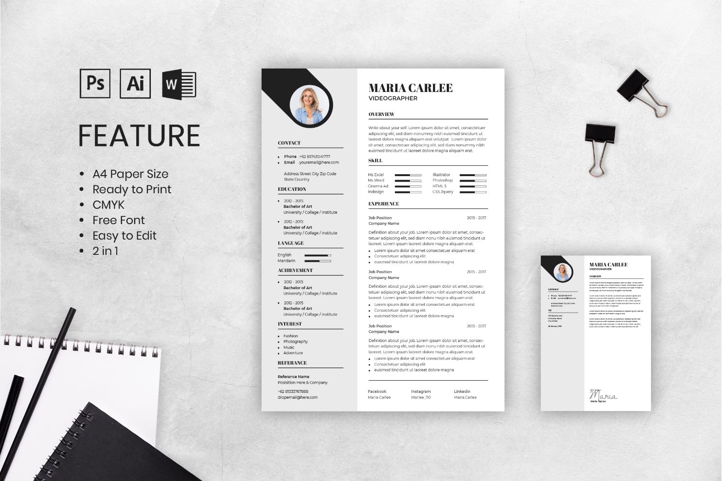 Download Резюме "CV Maria Carlee Resume Template" / CV Maria Carlee Resume Template - Резюме на тему графика resume,cv,job,business,work,curriculum,interview,vitae,personal,paper,professional,portfolio,letter,application,employment