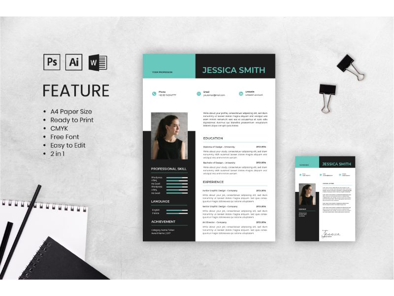 Download Резюме "Cv Resume Jessica Smith Resume Template" / Cv Resume Jessica Smith Resume Template - Резюме на тему графика adobe illustrator,applying,companies,curriculum vitae,female,freelance,jobs,personal brand,photoshop,portofolio,profile,resume,self branding,theme,videographer,word,worker