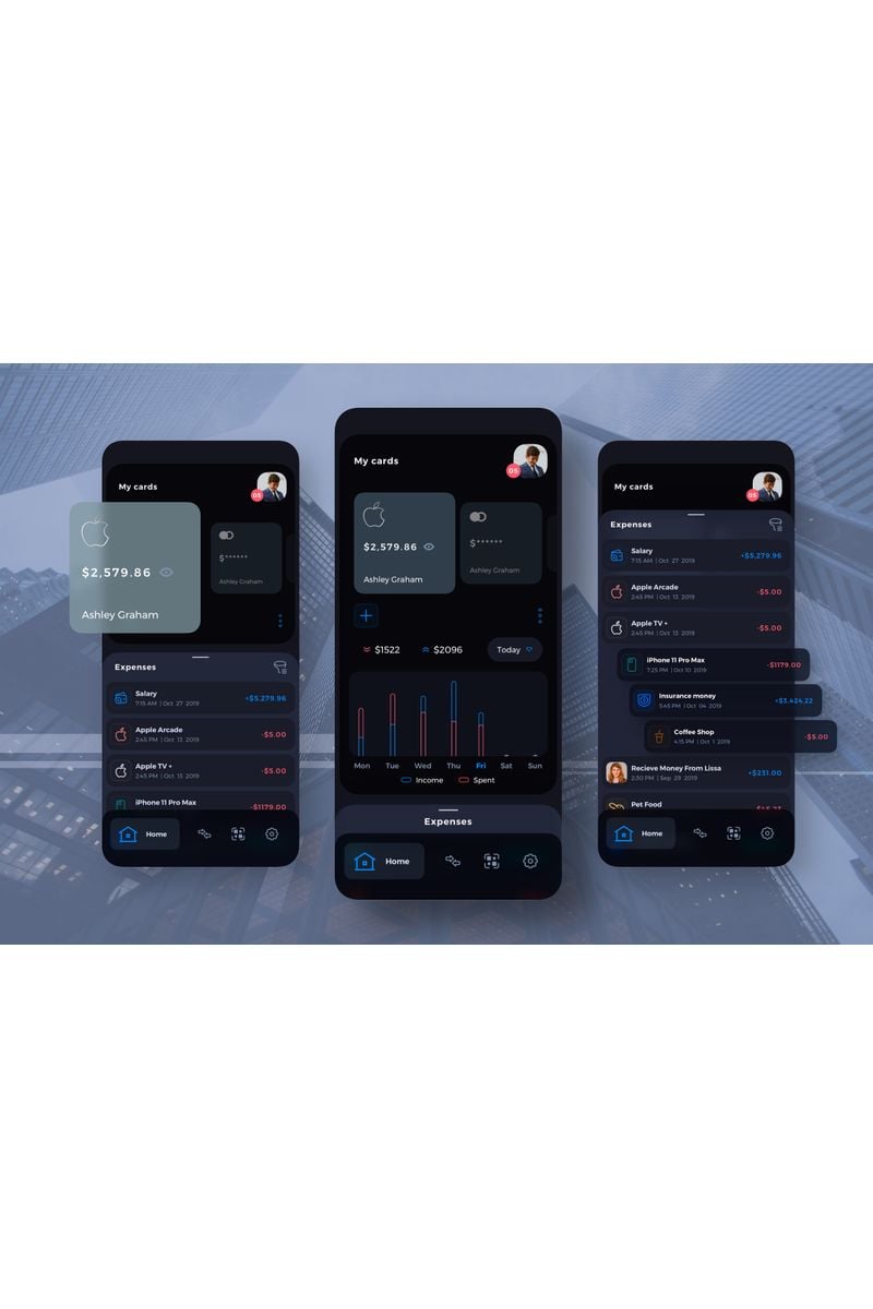 Download Sketch шаблон "Damofy Finance Management Mobile UI Darkmode Sketch Template" / Damofy Finance Management Mobile UI Darkmode Sketch Template - Sketch шаблон на тему графика