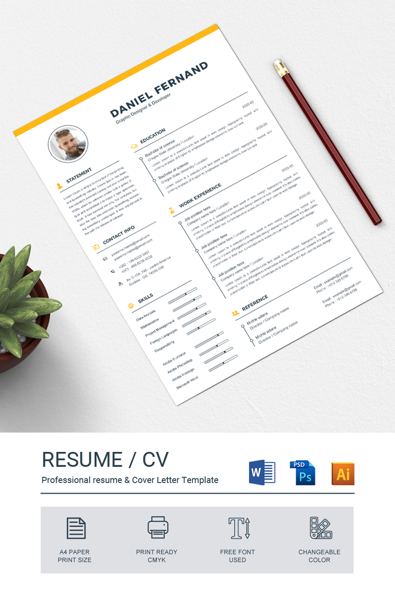 Download Резюме "Daniel Resume Template" / Daniel Resume Template - Резюме на тему графика resume template cv clean modern a4 doc elegant indesign infographic professional creative design minimal pages portfolio word us letter