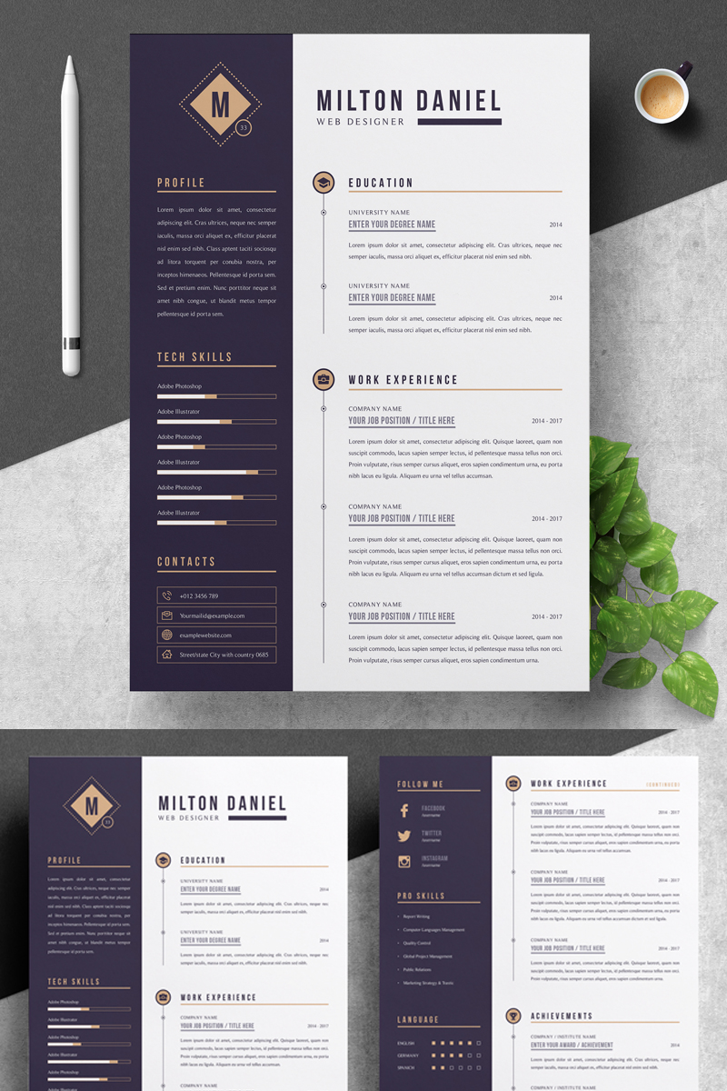 Download Резюме "Daniel Resume Template" / Daniel Resume Template - Резюме на тему графика page resume 2 3 clean cover letter curriculum vitae cv template illustrator eps mac pages microsoft word minimal resume