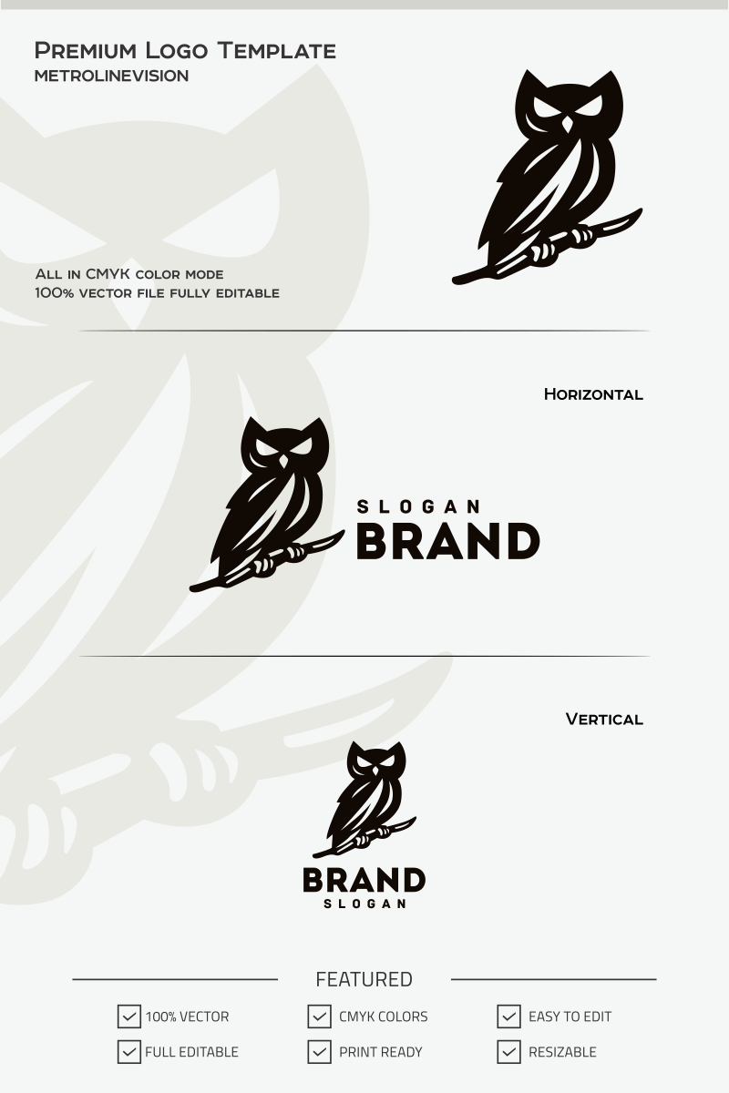 Download Шаблон логотипа "Dark Owl Logo Template" / Dark Owl Logo Template - Шаблон логотипа на тему графика app bird business communication community corporate fly hearing hunt insomnia nature office small vision wisdom work agency start up studio