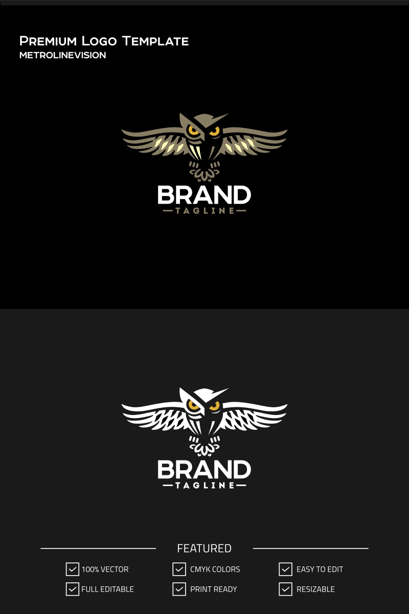 Download Шаблон логотипа "Dark Owl Logo Template" / Dark Owl Logo Template - Шаблон логотипа на тему графика abstract animal business company elegant forms logo media minimalist owl simple start up studio symbol technology web website eagle feathered