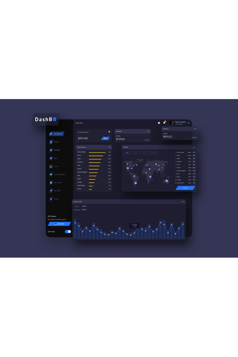 Download Sketch шаблон "DashBO Finance Dashboard UI Dark Sketch Template" / DashBO Finance Dashboard UI Dark Sketch Template - Sketch шаблон на тему графика