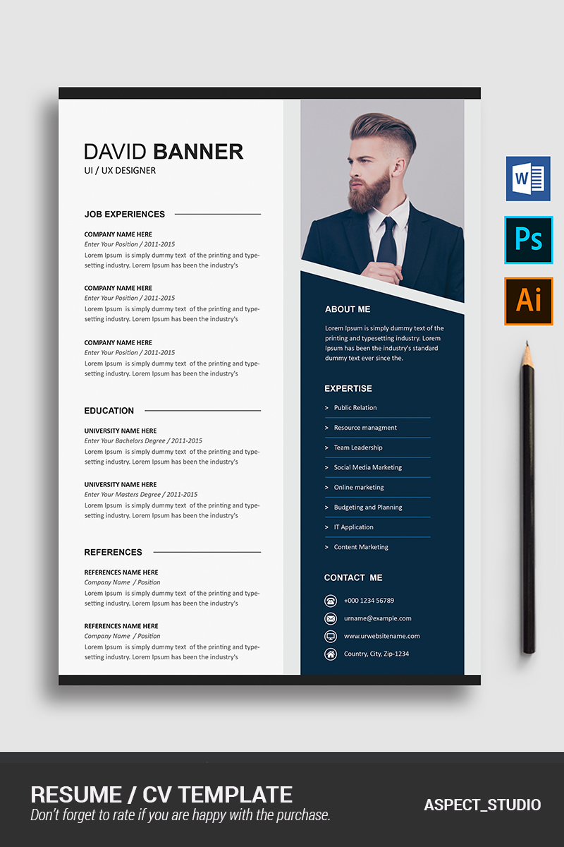 Download Резюме "David Banner Resume Template" / David Banner Resume Template - Резюме на тему графика 1,page,resume,2,3,clean,cover,letter,creative,cv,template,design,document,microsoft,word,minimalist,modern,photoshop,psd,professional