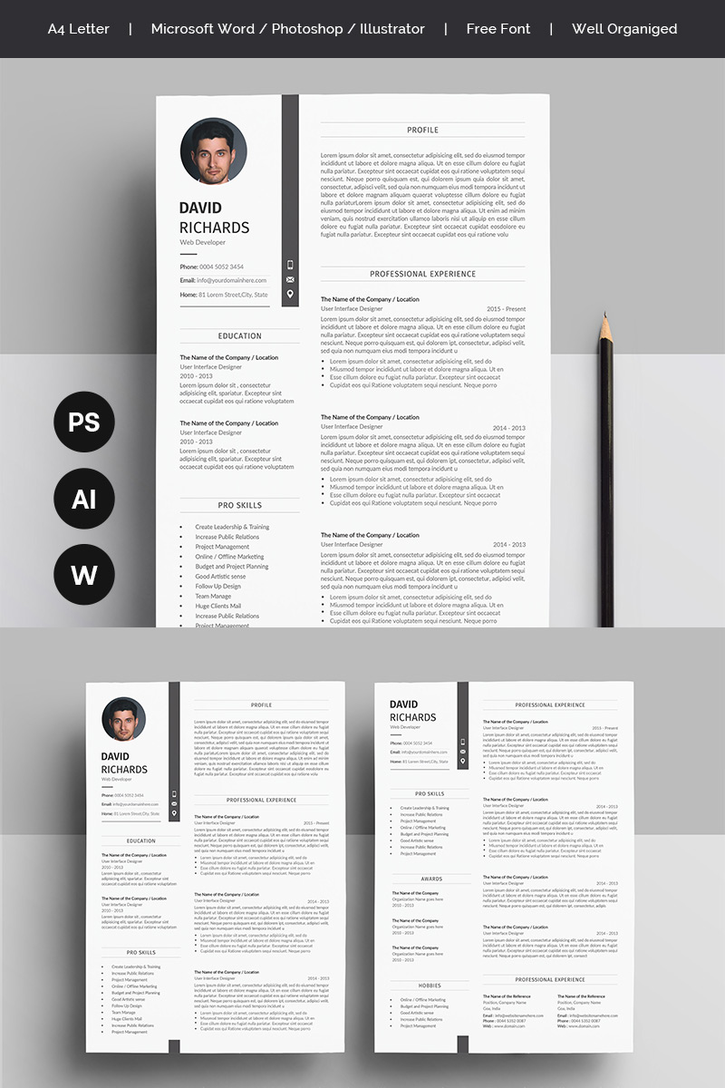 Download Резюме "David Richard Resume Template" / David Richard Resume Template - Резюме на тему графика a4 clean cv design elegant resume female infographic letter minimalist modern portfolio professional indesign minimal pages word template