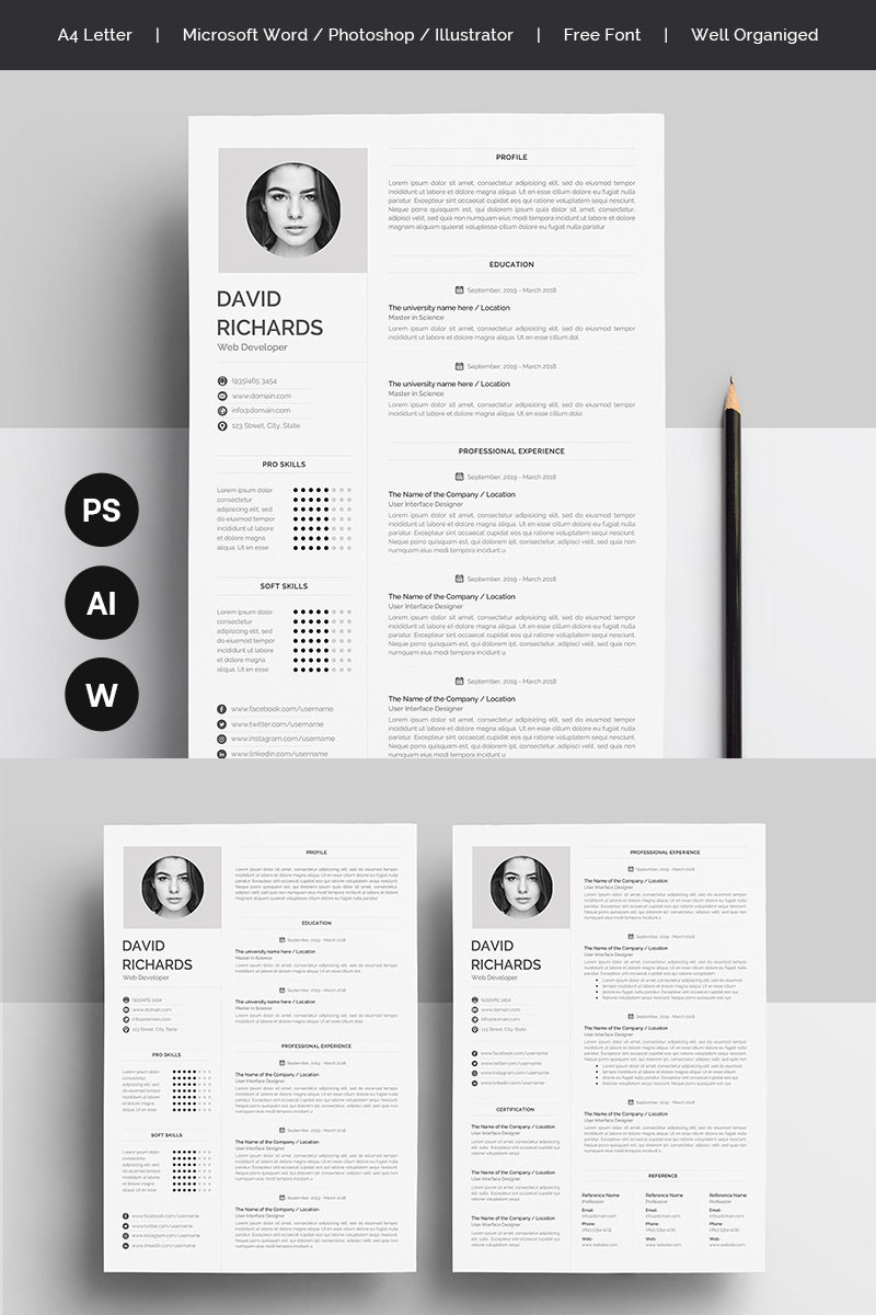 Download Резюме "David Richards Resume Template" / David Richards Resume Template - Резюме на тему графика a4 clean cv design elegant resume female infographic letter minimalist modern portfolio professional indesign minimal pages word template