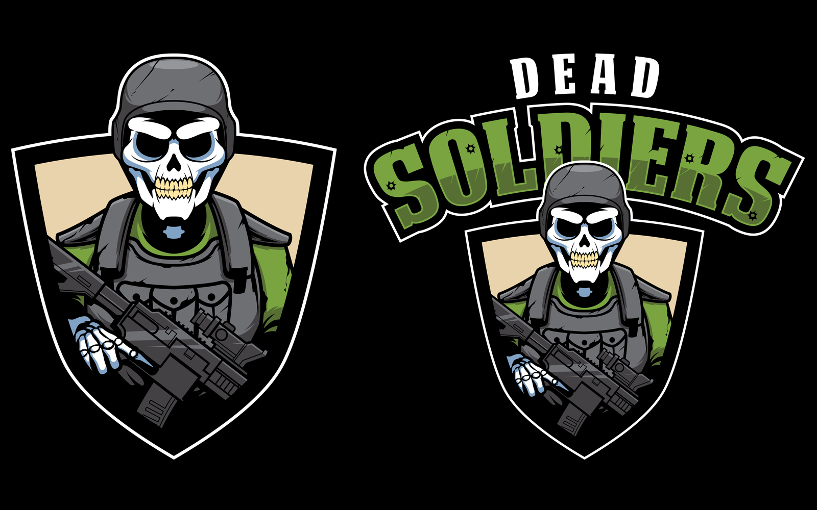 Download Иллюстрация "Dead Soldiers Mascot - Illustration" / Dead Soldiers Mascot - Illustration - Иллюстрация на тему графика dead,soldier,skull,combat,warrior,weapon,skeleton,death,war,military,uniform,gun,force,army,fight,fighter,armed,assault,riffle,person