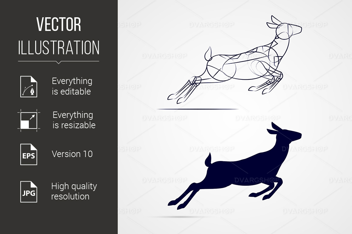 Download Vector "Deer Silhouette - Vector Image" / Deer Silhouette - Vector Image - Vector на тему графика silhouette,deer,sketch,illustration,running,noble,female,background,jump,big,beautiful,app,beast,graphic,simple,mammal,editable,hunt,animal,design