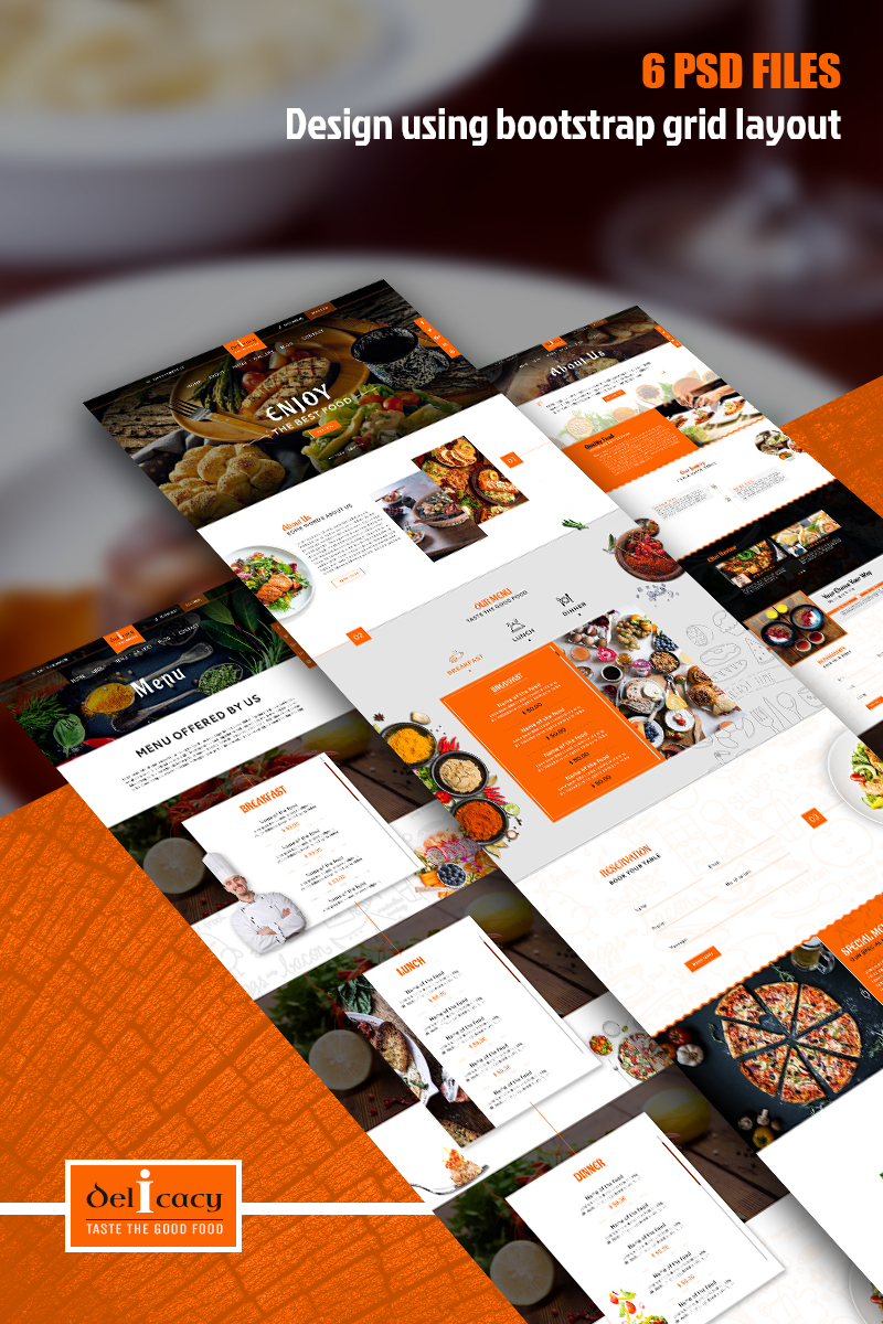 Download PSD шаблон "Delicacy - Multipurpose Restaurant PSD Template" / Delicacy - Multipurpose Restaurant PSD Template - PSD шаблон на тему пивоварня food foodies restaurant cafe dish meal wine tasty recipe cocktail launch dinner reservation cuisine waiter specials veg psd photoshop