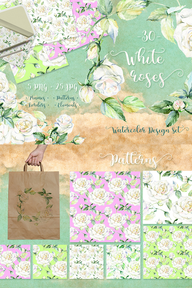 Download Иллюстрация "Delicate White Roses PNG Watercolor Set - Illustration" / Delicate White Roses PNG Watercolor Set - Illustration - Иллюстрация на тему графика watercolor rose illustration delicate drawing white background colorful drawn paint leaf plant wildflower seasonal foliage flower rosa sprout stem textile