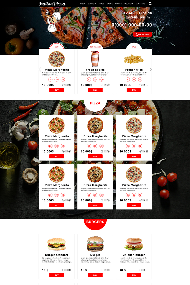 Download PSD шаблон "Delivery food PSD Template" / Delivery food PSD Template - PSD шаблон на тему пиццерия delivery food pizza drink landing page psd template bootstrap pickup burger