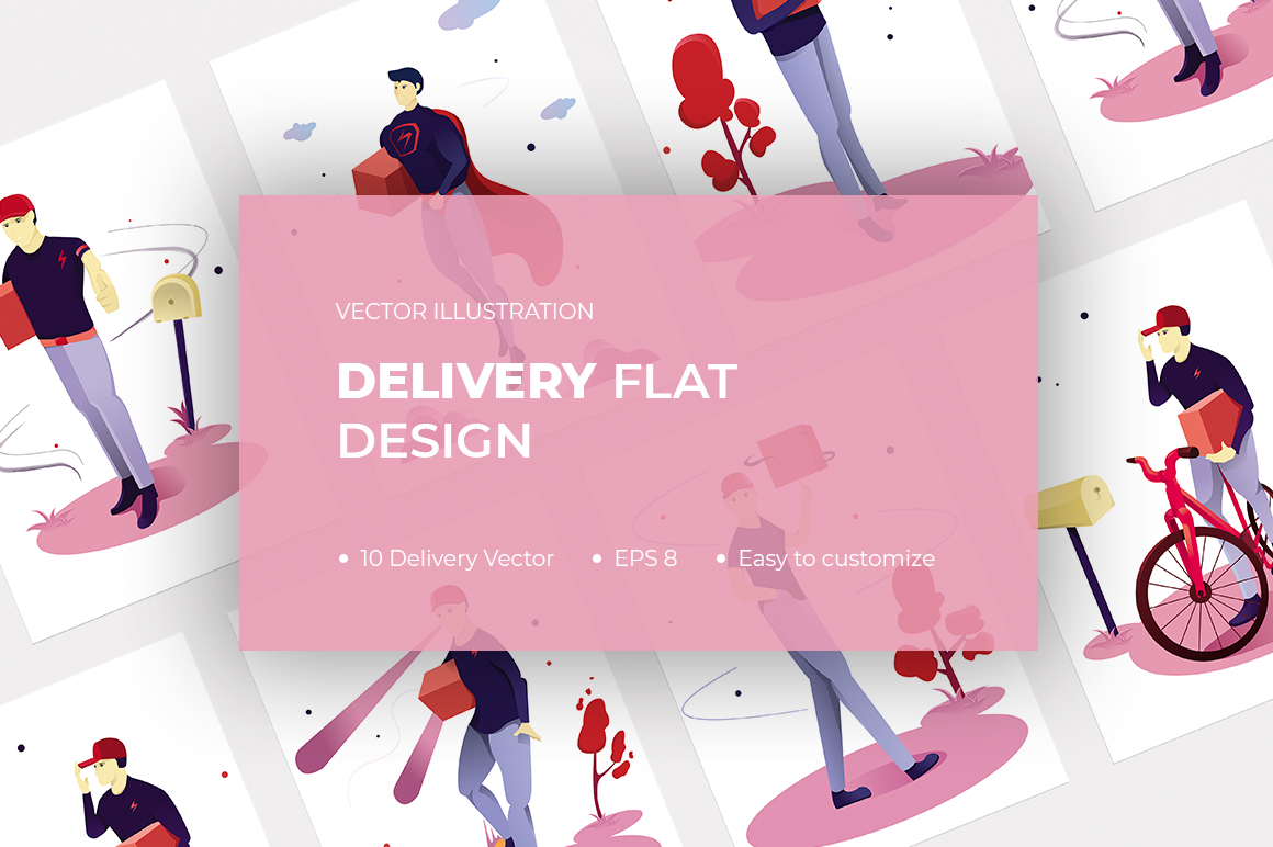 Download Иллюстрация "Delivery Vector Set - Illustration" / Delivery Vector Set - Illustration - Иллюстрация на тему графика delivery,character,cartoon,illustration,man,vector,courier,box,isolated,service,male,person,package,design,flat,job,parcel,set,business,happy,people,transportation,worker,guy,uniform,deliver,