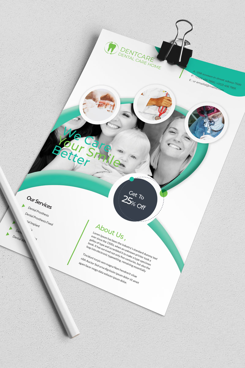 Download Фирменный стиль "Dental Care Flyer - Corporate Identity Template" / Dental Care Flyer - Corporate Identity Template - Фирменный стиль на тему графика flyer corporate corporate creative flyer travel business card card liflet computer internet stationery id kit blue hi-quality official green dental