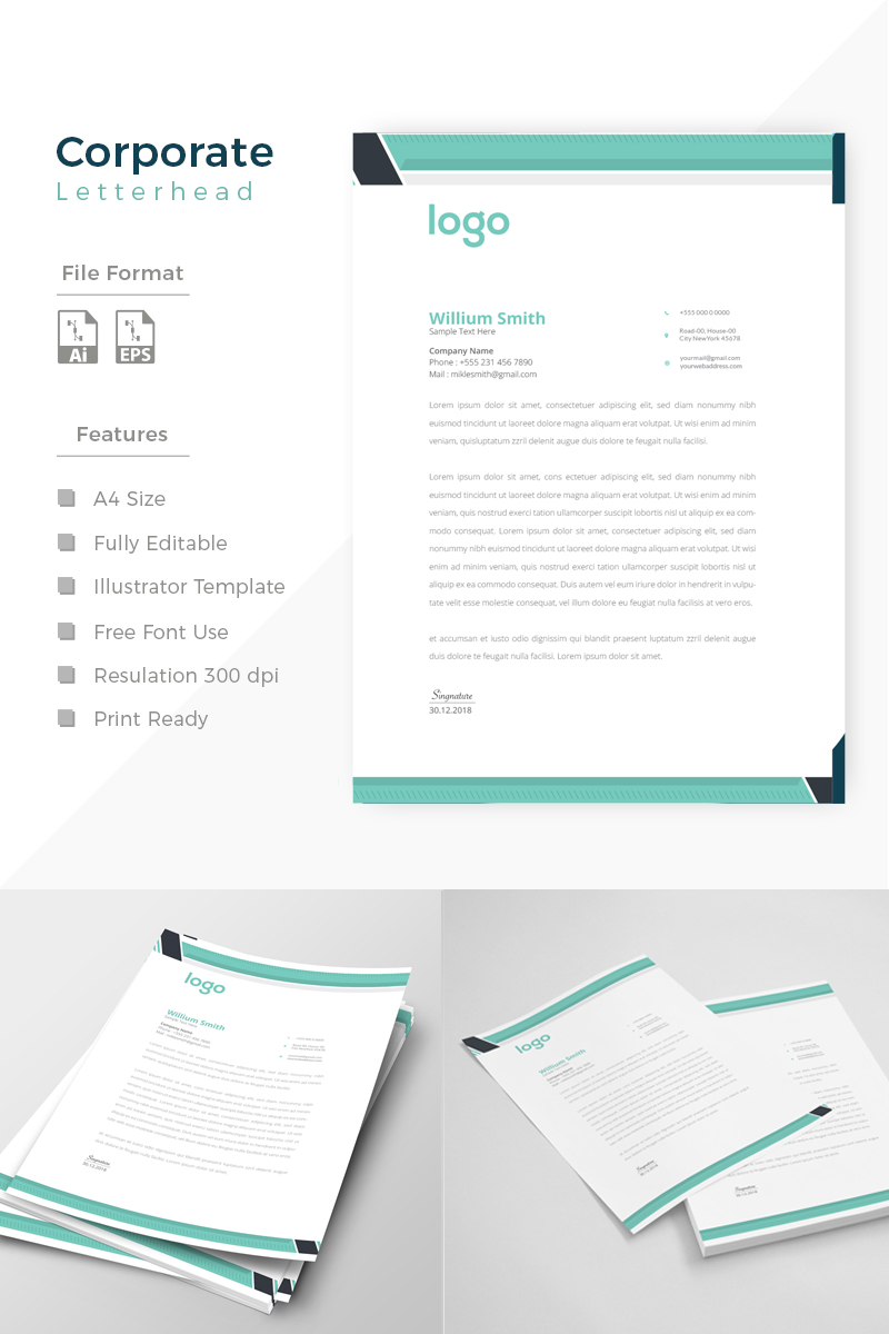Download Фирменный стиль "Design Pro Minimal Letterhead - Corporate Identity Template" / Design Pro Minimal Letterhead - Corporate Identity Template - Фирменный стиль на тему графика simply graphics template clean professional illustration logo style letter corporate print layout creative abstract corporation contract business letterhead headline vector