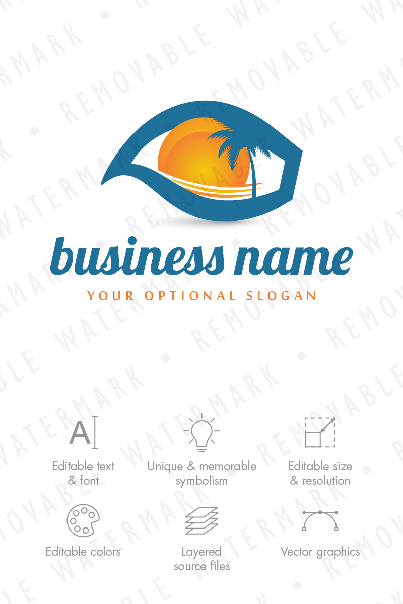 Download Шаблон логотипа "Destination Eye Logo Template" / Destination Eye Logo Template - Шаблон логотипа на тему графика eye wave travel ocean water coast resort sun shore vacation sunset beach sea exotic island destination surfing logo design template